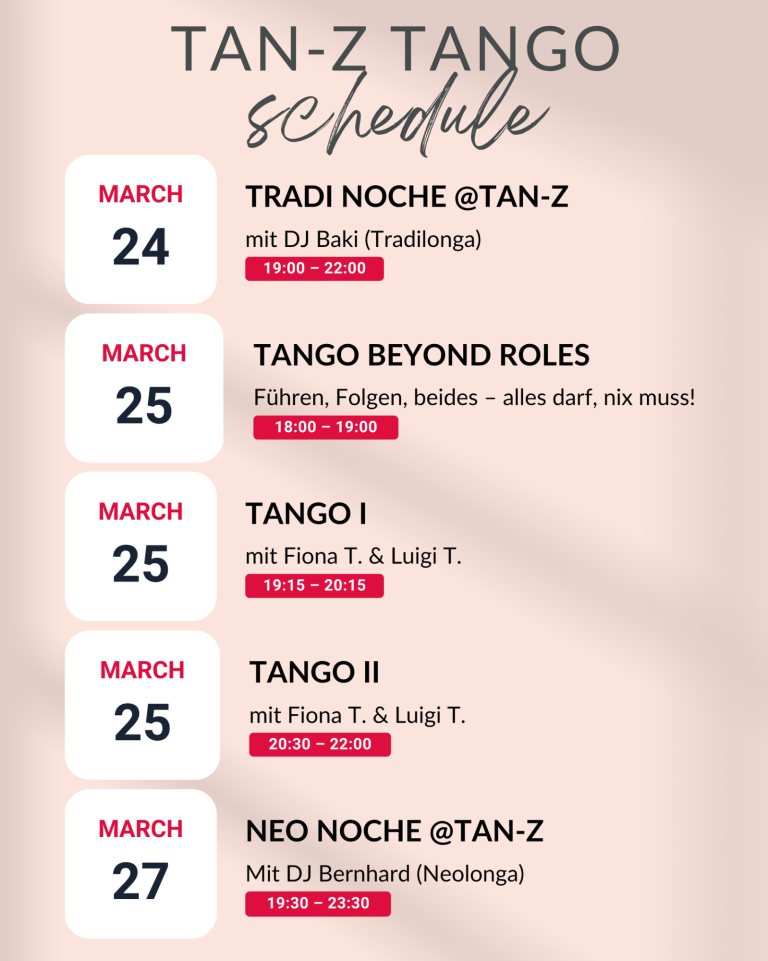 We explore the characteristic forms of tango – and deliberately go beyond them. Experience what it feels like to be led in order to lead better. Take the lead in order to follow more skillfully. Switching roles helps place the connection between partners and their communication at the center. At the same time, we refine the technique needed for a stable axis, powerful turns, and clear impulses. Join in and develop your skills in diverse ways.